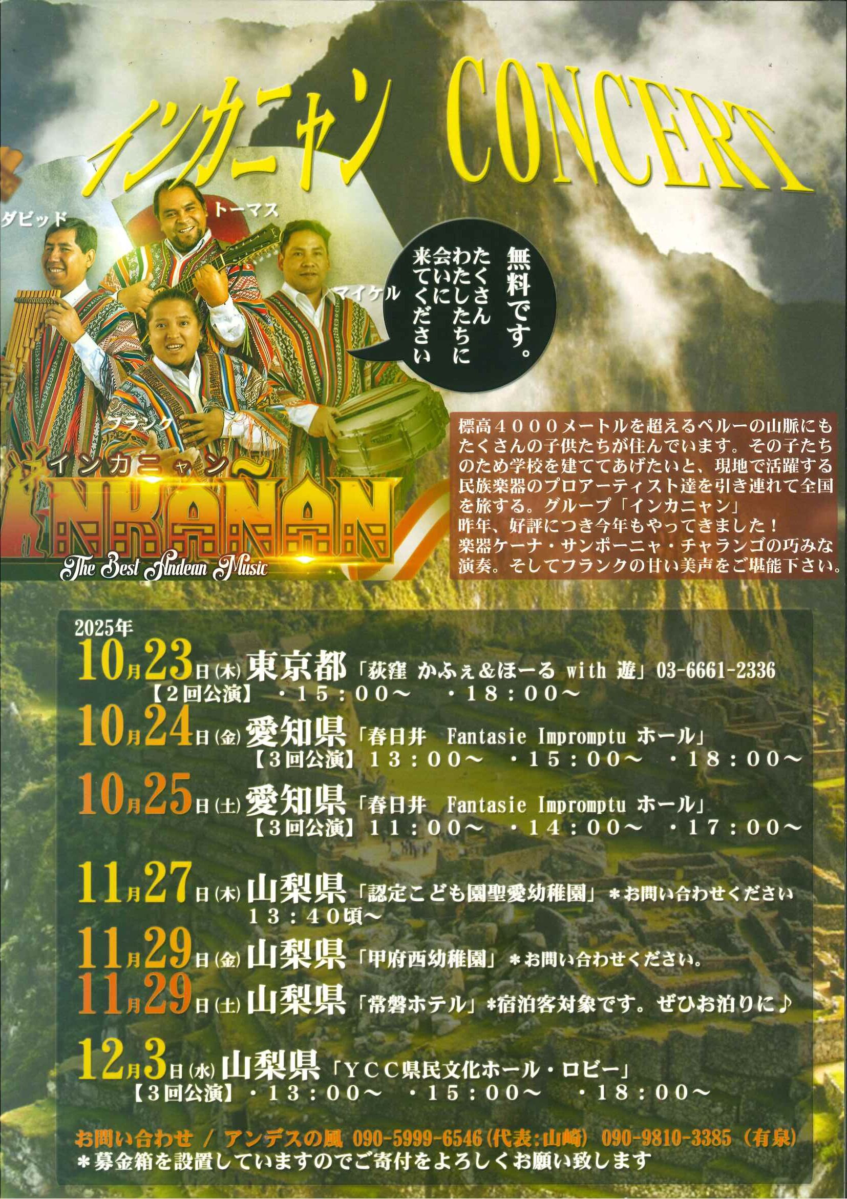 お問合せ:アンデスの風 090-5999-6546(山崎)