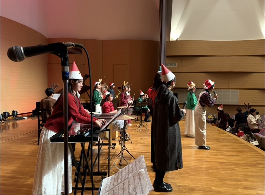 合唱、木管アンサンブル、金管アンサンブル、合奏など多彩な演奏でX’masを盛り上げます。